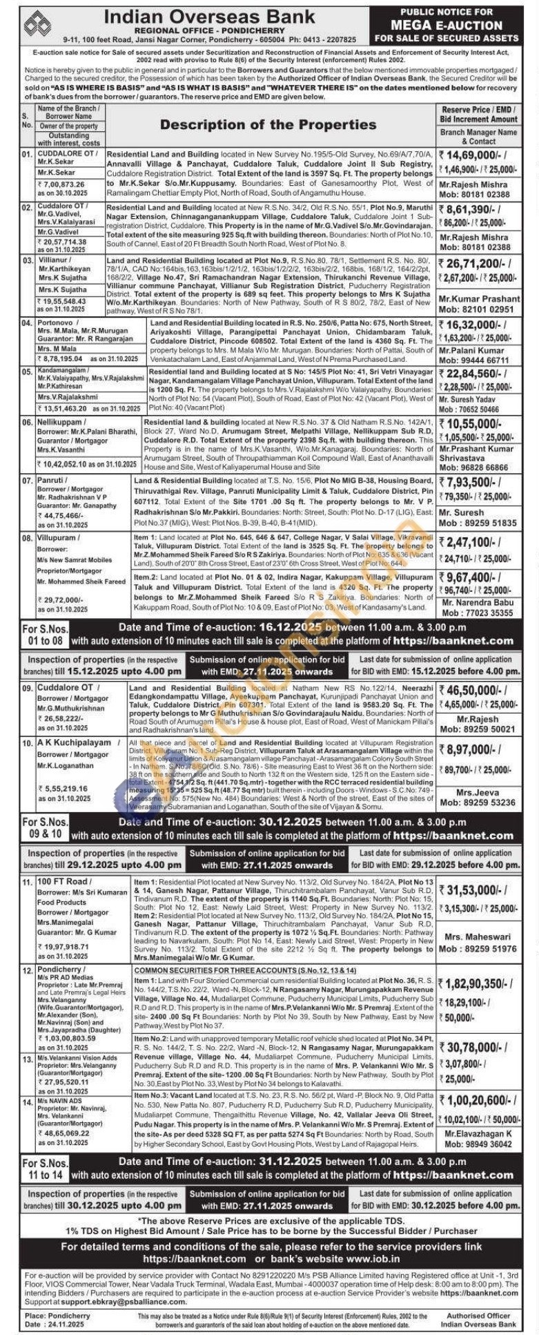 Contact Branch Manager Name Mr.Elavazhagan K Mob: 98949 36042