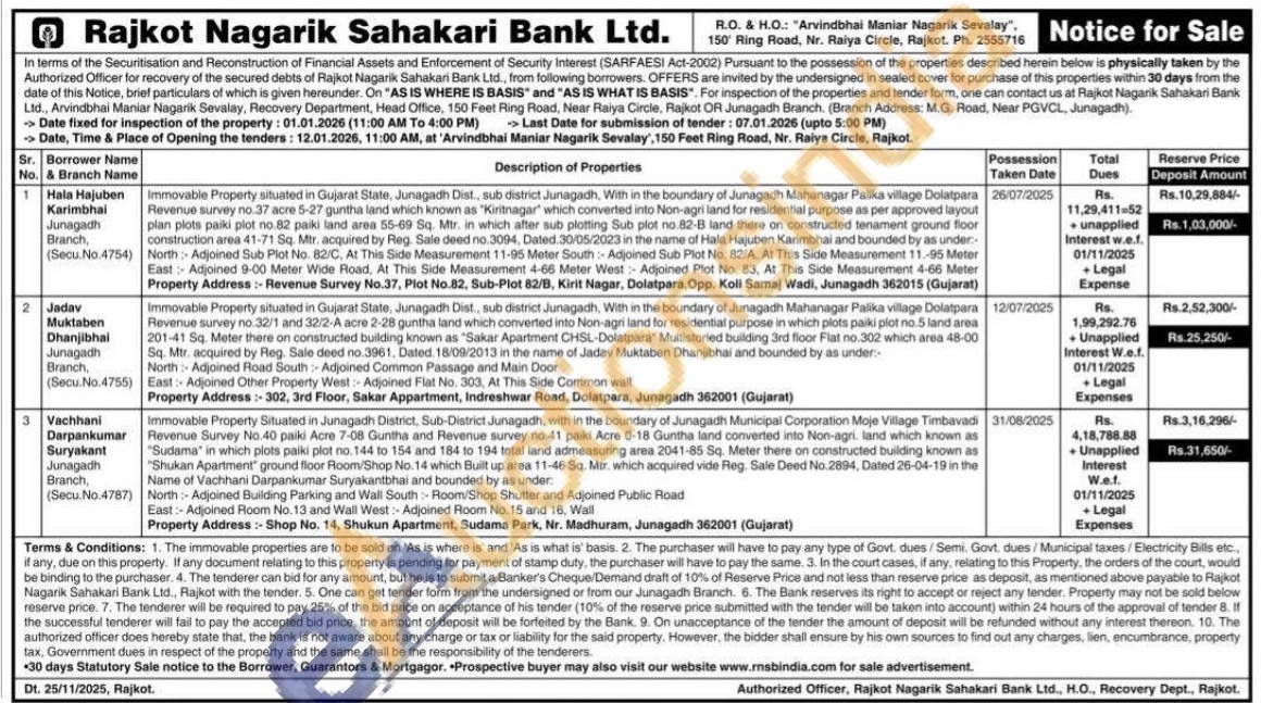 Immovable Property situated in Gujarat State, Junagadh Dist, sub district Junagadh, With in the boundary of Junagadh Mahanagar Palika village Dolatpara Revenue survey no.37 acre 5-27 guntha land which known as "Kiritnagar which converted into Non-agri land for residential purpose as per approved layout plan plots paiki plot no.82 paiki land area 55-69 Sq. Mtr. in which after sub plotting Sub plot no.82-B land there on constructed tenament ground floor construction area 41-71 Sq. Mtr. acquired by Reg. Sale deed no.3094, Dated 30/05/2023 in the name of Hala Hajuben Karimbhai and bounded by as under North Adjoined Sub Plot No. 82/C, At This Side Measurement 11-95 Meter South Adjoined Sub Plot No. 82/A, At This Side Measurement 11.-95 Meter East: Adjoined 9-00 Meter Wide Road, At This Side Measurement 4-66 Meter West: Adjoined Plot No. 83, At This Side Measurement 4-66 Meter Property Address:- Revenue Survey No.37, Plot No.82, Sub-Plot 82/B, Kirit Nagar, Dolatpara, Opp. Koli Samaj Wadi, Junagadh 362015 (Gujarat)