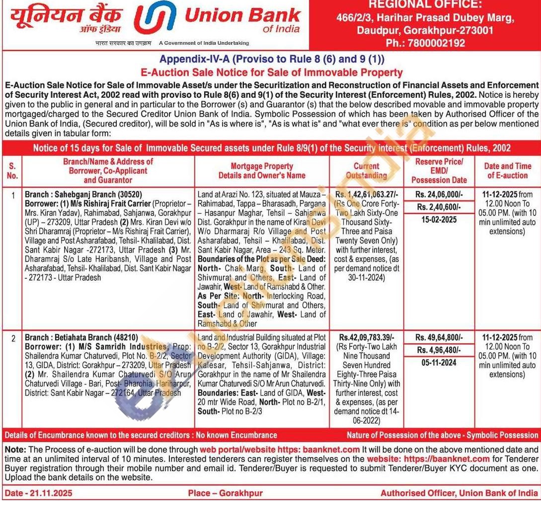 Land at Arazi No. 123, situated at Mauza Rahimabad, Tappa - Bharasadh, Pargana Hasanpur Maghar, Tehsil - Sahjanwa Dist. Gorakhpur in the name of Kiran Devi W/o Dharmaraj R/o Village and Post Asharafabad, Tehsil Khalilabad, Dist. Sant Kabir Nagar, Area 243 Sq. Meter. Boundaries of the Plot as per Sale Deed: North Chak Marg, South Land of Shivmurat and Others, East Land of Jawahir, West-Land of Ramshabd & Other. As Per Site: North- Interlocking Road, South- Land of Shivmurat and Others, East-Land of Jawahir, West Land of Ramshabd & Other
