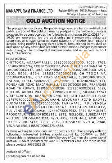 Manappuram Finance Ltd Gold Auctions Auction in Chittoor