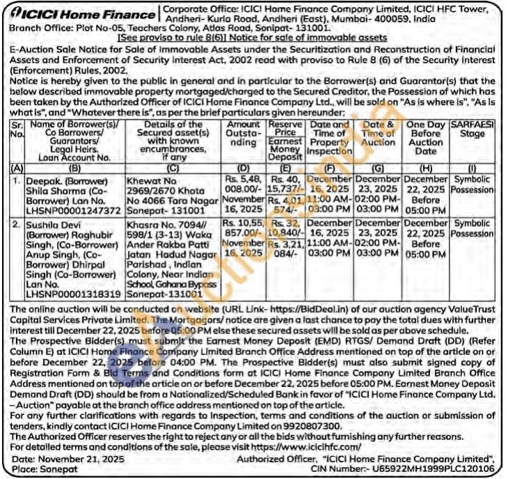 Khewat No 2969/2670 Khata No 4066 Tara Nagar Sonepat-131001