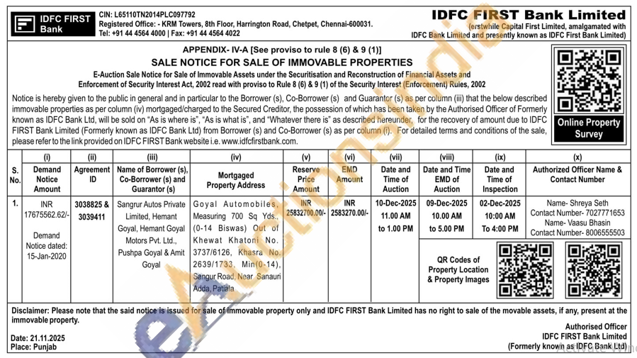 Goyal Automobiles, Measuring 700 Sq Yds., (0-14 Biswas) Out of Khewat Khatoni No. 3737/6126, Khasra No. 2639/1733, Min(0-14), Sangur Road, Near Sanauri Adda, Patiala