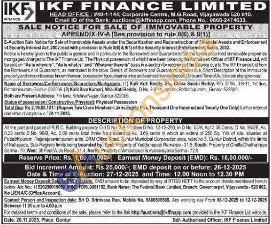 All the part and parcel of R.R.C. Building property Old D.No. 3-9-11, New D.No. 12-12-293, in D.No. 53/A, Ac/ 3.38 Cents, D. No. 95/28, Αc. 0.22 cents D.No. 96/8, Ac. 0.09 cents total three Nos extent of Ac. 3.69 cents in which an extent of 250 Sq. Yds of sile, situated at Pattabhipuram, Rajarajeswari puram area, DRM Office Road, Guntur Municipal Corporation area, ward no 3, Guntur District, within the limits of Nallapadu, Sub-Registry limits being bounded by: East Property of Yeddanapudi Ramarao-31.9, South: Property of Challa Dhathalraya Sarma-70, West: 30 Fent Wide Road-31.4, North: Property of Ambatipudi Suryanarayana Sarma-72.9
