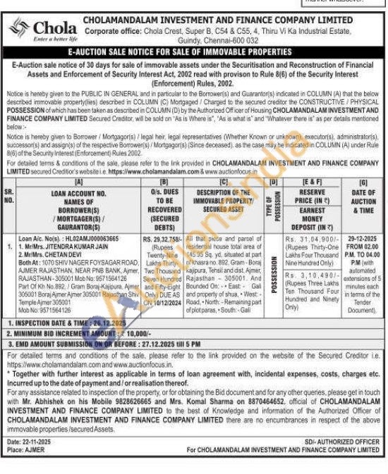 All that piece and parcel of residential nouse total area of 145.95 Sq yd, situated at part of khasra no 882. Gram-Bonaj kajpura, Tensil and dist. Ajmer, Rajasthan 305001. Από Bounded On: East: Gal and property of shua, West Road, North: Remaining part of pict paras, South-Gall
