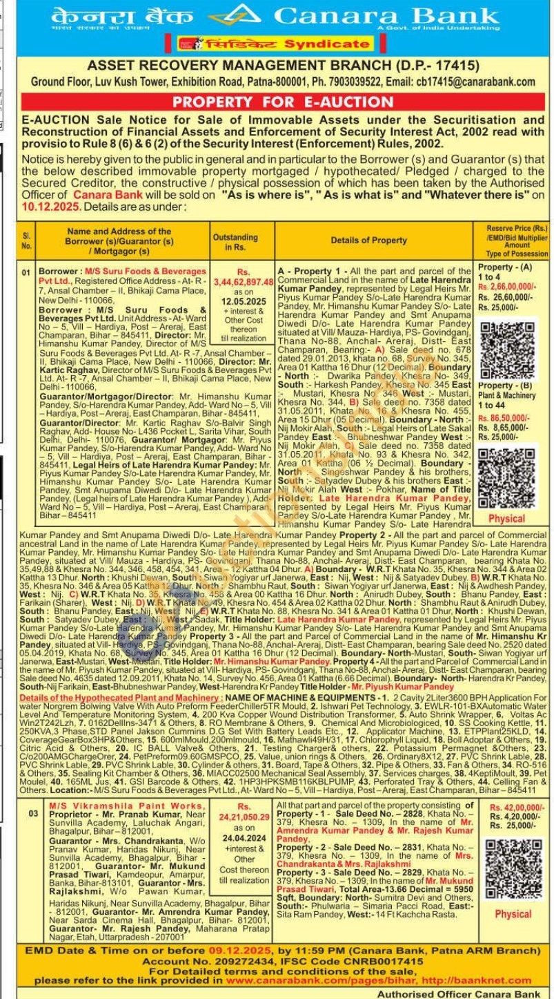 All that part and parcel of the property consisting of Property-1- Sale Deed No.-2828, Khata No. 379 Khesra No 1309, In the name of Mr. Amrendra Kumar Pandey & Mr. Rajesh Kumar Pandey. Property 2 Sale Deed No. 2831, Khata No.-379, Khesra No.1309, In the name of Mrs. Chandrakanta & Mrs. Rajlakshmi Property 3 Sale Deed No.2829, Khata No.-379, Khesra No.1309, In the name of Mr. Mukund Prasad Tiwari, Total Area-13.66 Decimal 5950 ecimal Soft, Boundary: North Sumitra Devand Other South: Phulwaria Simaria Pacci Road, E Sita Ram Pandey, West:-14 F1 Kachcha Rasta