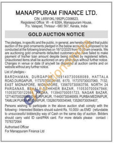 Manappuram Finance Ltd Gold Auctions Auction in Durgapur
