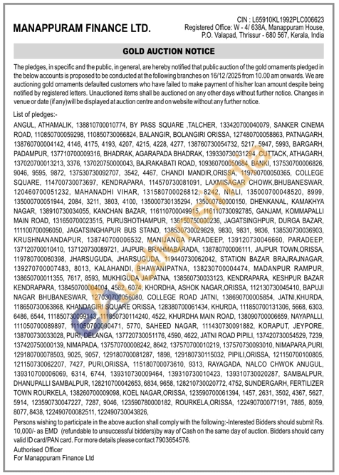Manappuram Finance Ltd Gold Auctions Auction in Angul