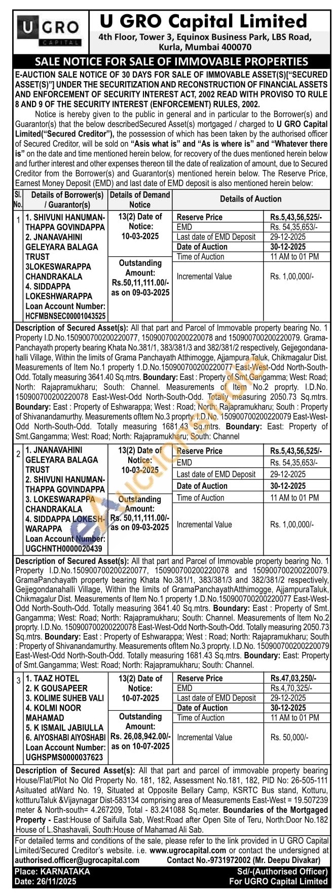 Description of Secured Asset(s): All that part and Parcel of immovable property bearing No. 1 Property I.D.No. 150900700200220077, 150800700200220078 and 150800700200220079. Grama-