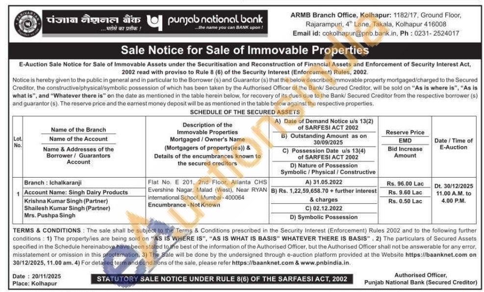 Flat No. E 201, 2nd Floor, Atlanta CHS Evershine Nagar, Malad (West), Near RYAN international School, Mumbai-400064 Encumbrance-Not Known