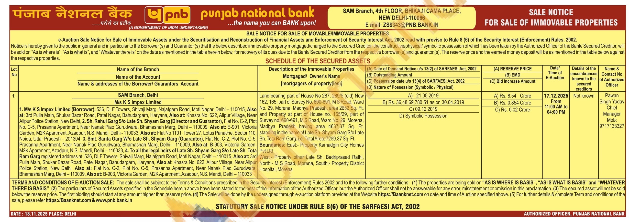 Pawan Singh Yadav Chief Manager Mob: 9717133327