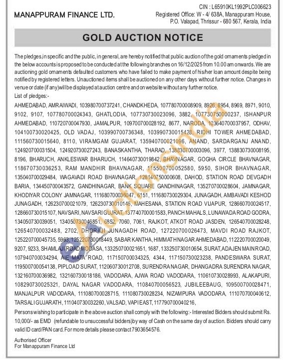 Manappuram Finance Ltd Gold Auctions Auction in Thrissur