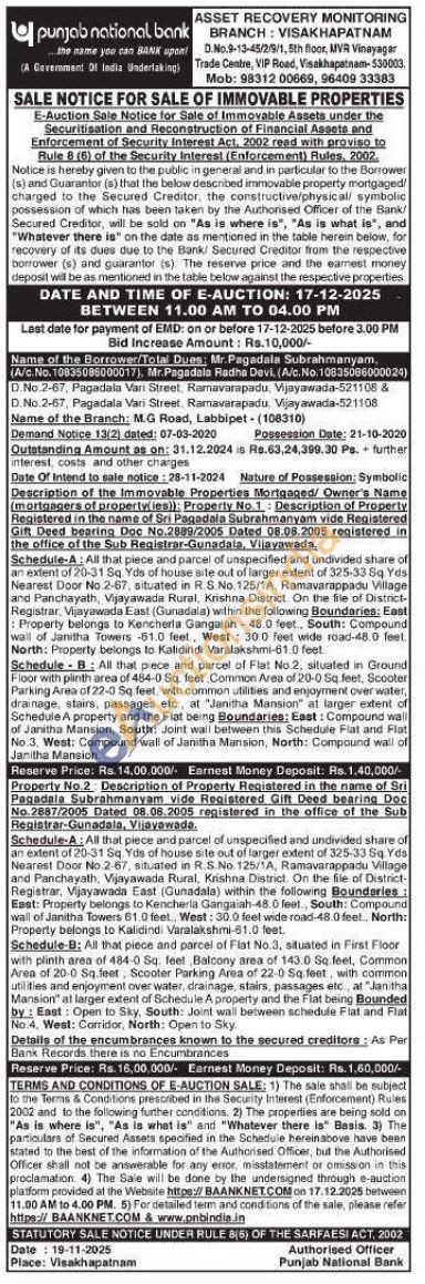 Schedule-A: All that piece and parcel of unspecified and undivided share of an extent of 20-31 Sq. Yds of house site out of larger extent of 325-33 Sq Yes Nearest Door No.2-67, situated in R.S.No. 125/1A, Ramavarappadu Village and Panchayath, Vijayawada Rural, Krishna District. On the file of District-Registrar, Vijayawada East (Gunadala) within the following Boundaries: East: Property belongs to Kencherla Gangaiah-48.0 feet., South: Compound wall of Janitha Towers 61.0 feet., West: 30.0 feet wide road-48.0 feet, North: Property belongs to Kalidindi Varalakshmi-61.0 feet. Schedule-B: All that piece and parcel of Flat No.3, situated in First Floor with plinth area of 484-0 Sq. feet Balcony area of 143.0 Sq. feet, Common Area of 20-0 Sq.feet, Scooter Parking Area of 22-0 Sq feet, with common utilities and enjoyment over water, drainage, stairs, passages etc, at "Janitha Mansion" at larger extent of Schedule A property and the Flat being Bounded by: East: Open to Sky, South: Joint wall between schedule Flat and Flat No.4, West: Corridor, North: Open to Sky.