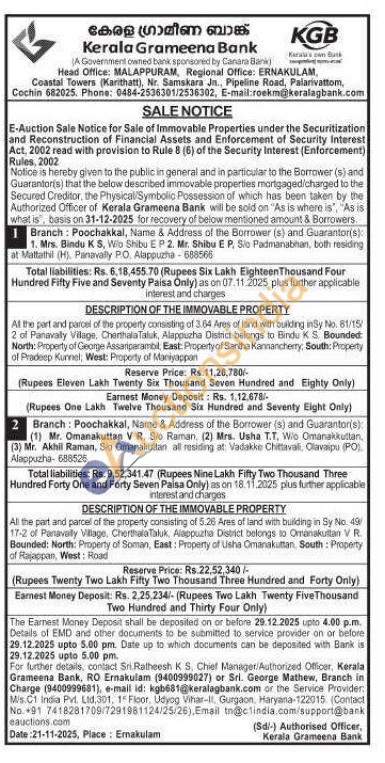 All the part and parcel of the property consisting of 5.26 Ares of land with building in Sy No. 49 17-2 of Parnavally Village. Cherthalo Taluk, Alappuzha District belongs to Omanakuttan V R Bounded: North: Property of Soman, East: Property of Lisha Omanakutan. South: Property of Rajappan, West: Road