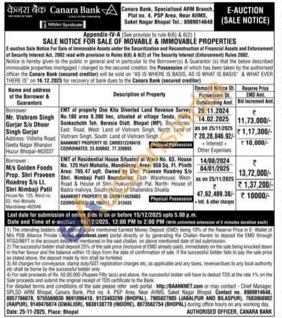 EMT of property One Kita Diverted Land Revenue Survey No.180 area 0.390 hec, situated at village Tanda, Halka East: Road, West: Land of Vishram Singh, North: Land of Vishram Singh, South: Land of Vishram Singh Sonkachchh Teh. Berasia Distt. Bhopal (MP). Boundaries: BAANKNET PROPERTY ID: CNR8312249410 COORDINATES: 23.630682, 77.330693