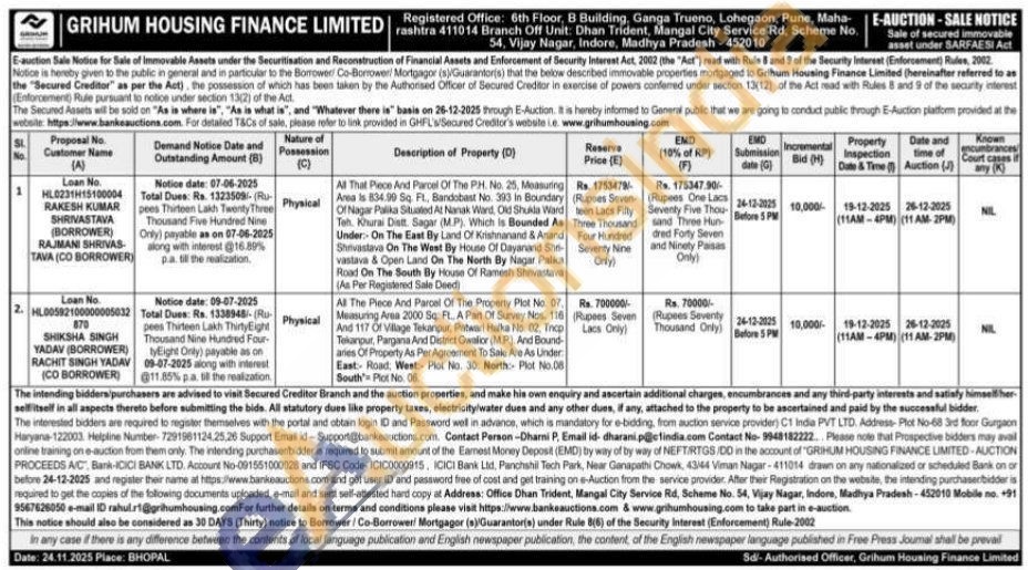 All The Piece And Parcal Of The Property Plot No. 07. And 117 Of Village Tekanpur, Patwari Halka No. 02. Trop Tekaripur, Pargana And District Gwalior (M.P.). And Bound-aries Of Property As Per Agreement To Sale Are As Under East Road, West- Plot No. 30. North: Plot No.08 South Plot No. 0