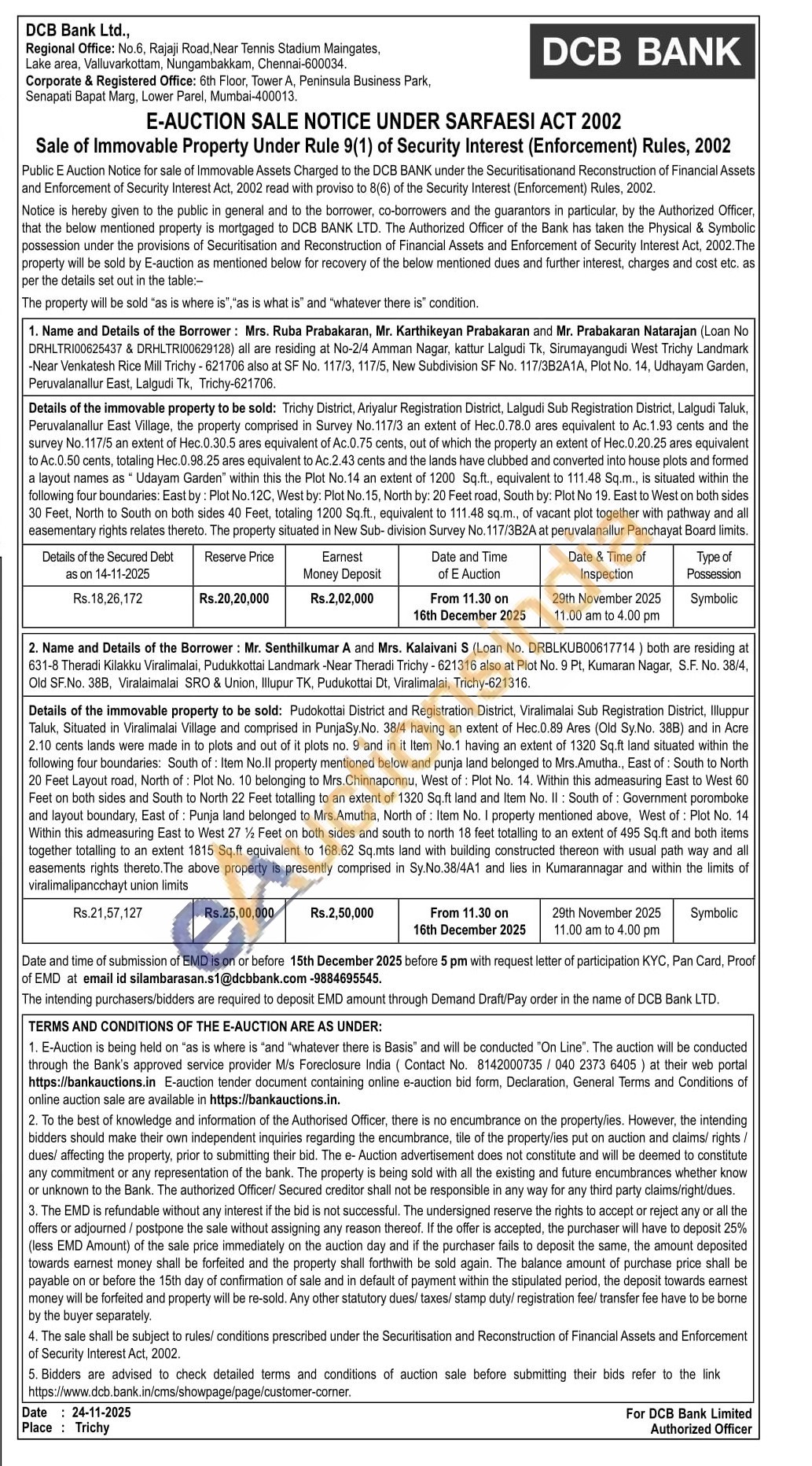 Pudokottai District and Registration District, Viralimalai Sub Registration District, Illuppur Taluk, Situated in Viralimalai Village and comprised in PunjaSy.No. 38/4 having an extent of Hec.0.89 Ares (Old Sy.No. 38B) and in Acre 2.10 cents lands were made in to plots and out of it plots no. 9 and in it Item No.1 having an extent of 1320 Sq.ft land situated within the following four boundaries: South of: Item No.Il property mentioned below and punja land belonged to Mrs. Amutha., East of: South to North 20 Feet Layout road, North of: Plot No. 10 belonging to Mrs. Chinnaponnu, West of: Plot No. 14. Within this admeasuring East to West 60 Feet on both sides and South to North 22 Feet totalling to an extent of 1320 Sq.ft land and Item No. II: South of: Government poromboke and layout boundary, East of: Punja land belonged to Mrs. Amutha, North of: Item No. I property mentioned above, West of: Plot No. 14 Within this admeasuring East to West 27 ½ Feet on both sides and south to north 18 feet totalling to an extent of 495 Sq.ft and both items together totalling to an extent 1815 Sq.ft equivalent to 168.62 Sq.mts land with building constructed thereon with usual path way and all easements rights thereto. The above property is presently comprised in Sy.No.38/4A1 and lies in Kumarannagar and within the limits of viralimalipancchayt union limits