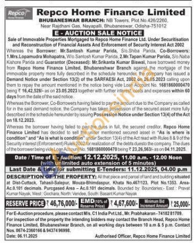 All that pece and parsel of land and building situated at Dist-Cuttack, Tahasil-Salepur, Mouza-Bhimdaspur Khata No.467/123, Plot No.1353. Алва Ac.0.101 decimals. Purogased Area-Ac.0.101 decimals. Bounded by Boundaries-East: Praval Kumar Nayak, West Gochara North Vendee, South Basant Kumar Nayak