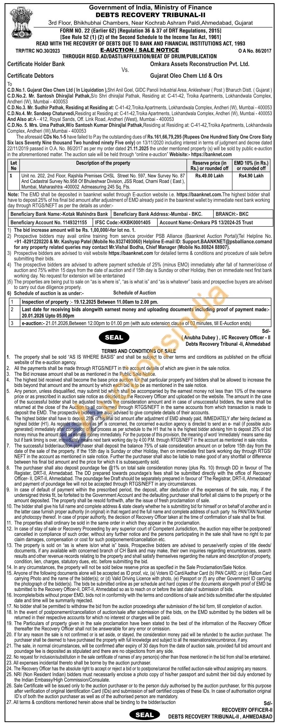 Unit no. 202, 2nd Floor, Rajshila Premises CHSL Street No. 597, New Survey No. 87 And Cadastral Survey No.958 Of Bhuleshwar Division, JSS Road, Charni Road (East), Mumbai, Maharashtra-400002 Admeasuring 245 Sq. Fts.