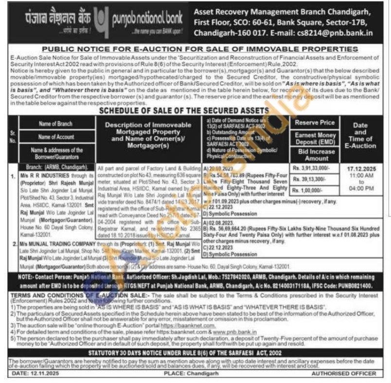 All part and parcel of Factory Land & Building constructed on plot No 43, measuring 636 square meter, situated at Plot/Shed No. 43. Sector 3. Industrial Area, HSIIDC, Kamal owned by Smt Raj Munjel Wio Late Shri Joginder Lal Munjal vide transfer deed No. 8474/1 dated 14.03.2017, registered with the office of Sub-Registrar Kamal read with Conveyance Deed No 257/1 dated 07. (04-2004 registered with the office of Registrar Kamal, and re-allotment No 2365 dated 18.10.2018 issued by HSIIDC, Karmal