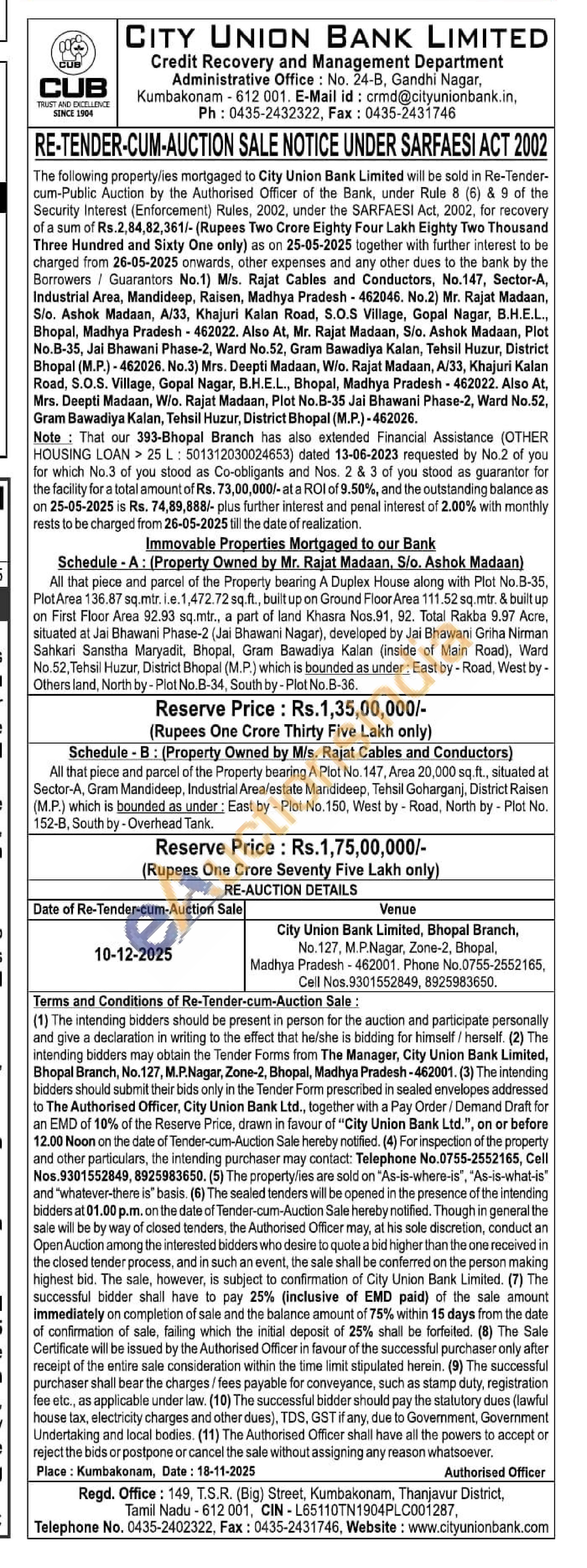 All that piece and parcel of the Property bearing A Duplex House along with Piat No.B-35, Plat Ares 136.87 sc.miz. le.1.472: 72 sq.ft., builtupen Ground Floor Area 111.52 sq mtr. & buitup on First Floor Area 92.93 sq mir,, a part of land Khasra Nos.91, 92. Total Rakba 9.97 Acre, siluated at Jai Bhawani Phase-2 (Jai Bhawani Negar), developed by Jai Bhewani Griha Nirman Sahkari Sanstha Maryadi, Bhopal, Gram Bawadiya Kalan jinside of Mair Road), Ward No 52, Tens Huzur, District Bhopal (M.P.) which is bounded as under: East by-Road, West by-Others land. North by Plot No.8-34, South by Plot No.B-36
