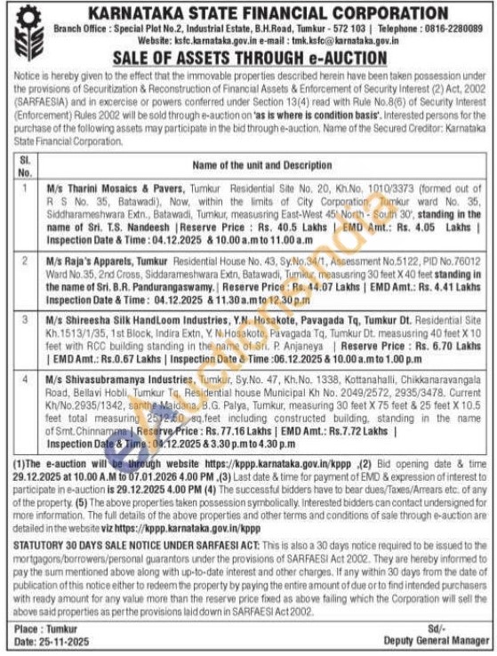 Turnkur Residential Site No. 20, Kh.No, 1010/3373 (formed out of RS No. 35, Batawadi), Now, within the limits of City Corporation, Tumkur ward No. 35, Siddharameshwara Extn., Batawadi, Tumkur, measusring East-West 45' North-South 30', standing in the name of Sri. T.S. Nandeesh