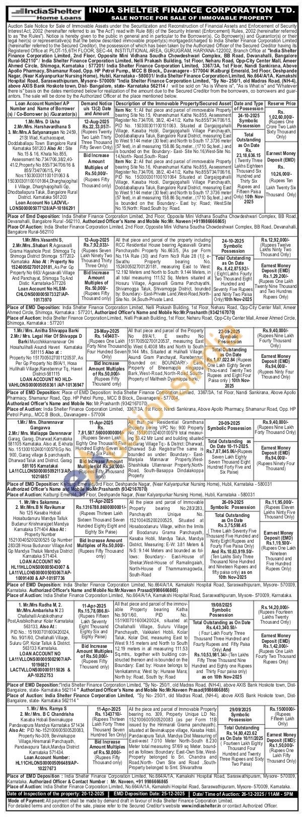 All that piece and parcel of immoveable Property bearing Site No.15, Khaneshumari Katha No.855, Assessment Register No.734/706, 38/2, 40-41/2, Katha No.855/734/706/15, / PID No. 150300301100101063. Situated at Dargajogahalli Twenty Village, Kasaba Hobi, Dargajogahalli Village Panchayath, Thirty Doddaballapura Taluik, Bangalore Rural District, measuring East to West 9.144 meter (30 feet) and North to South 17.3736 meter (57 feet), in all measuring 158.86 Sq.meter., (1710 Sq.leet) and is bounded on the: Boundary:- East- Site No.16.West-Site No. 14, North- Raod, South-RoadItem No: 2: All that piece and parcel of immoveable Property bearing Site No.16, Khaneshumari Katha No.855, Assessment Register No.734/706, 38/2, 40-41/2, Katha No.855/734/706/16, PID No. 150300301100101064 Situated at Dargajogahalli Village, Kasaba Hodi, Dargajogahalli Village Panchayath, Doddaballapura Taluk, Bangalore Rural District, measuring East to West 9.144 meter (30 feet) and North to South 17.3736 meter (57 feet), in all measuring 158.86 Sq.meter., (1710 Sq.feet) and is bounded on the Boundary: East by: Road; West:Site No. 15 North: Road, South by: Road.