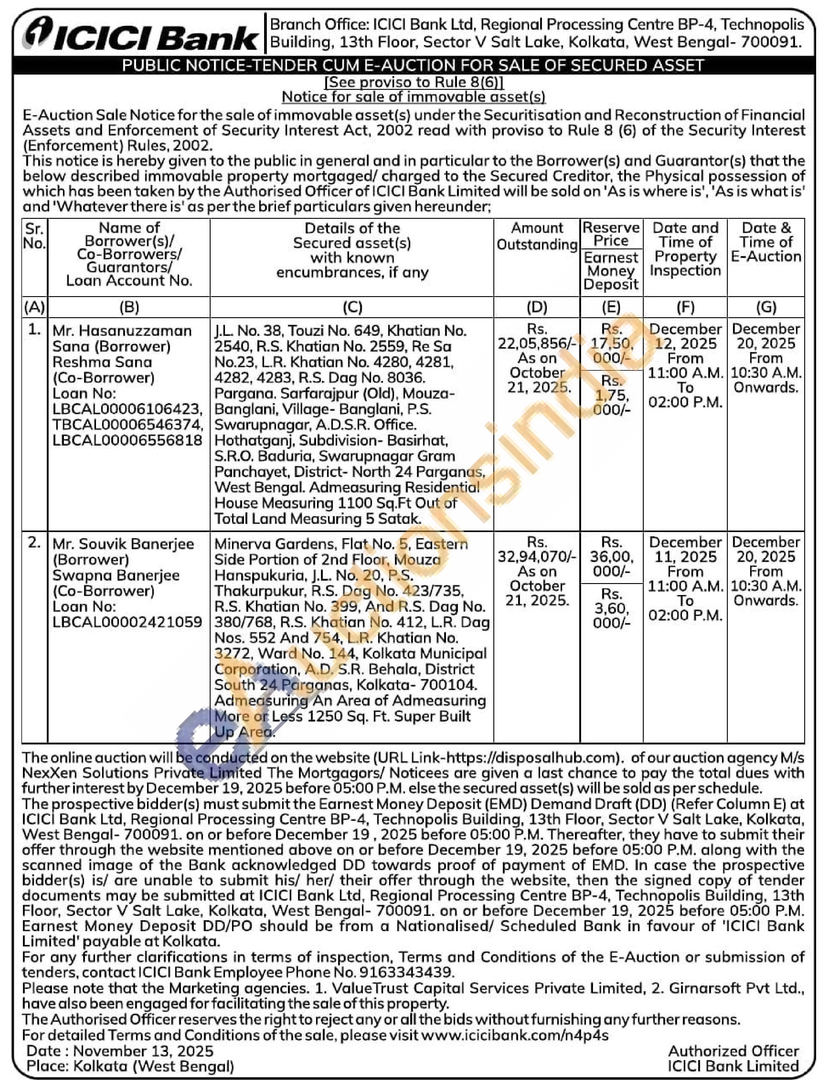 J.L No. 38, Touzi No. 649, Khatian No. 2540, R.S. Khatian No. 2559, Re Sa No.23, L.R. Khatian No. 4280, 4281, 4282, 4283, R.S. Dag No. 8036. Pargana, Sarfarajpur (Old), Mouza-Banglani, Village- Banglani, P.S. Swarupnagar, A.D.S.R. Office. Hothatganj, Subdivision-Basirhat, S.R.O. Baduria, Swarupnagar Gram Panchayet, District-North 24 Parganas, West Bengal. Admeasuring Residential House Measuring 1100 Sq.Ft Out of Total Land Measuring 5 Satak.