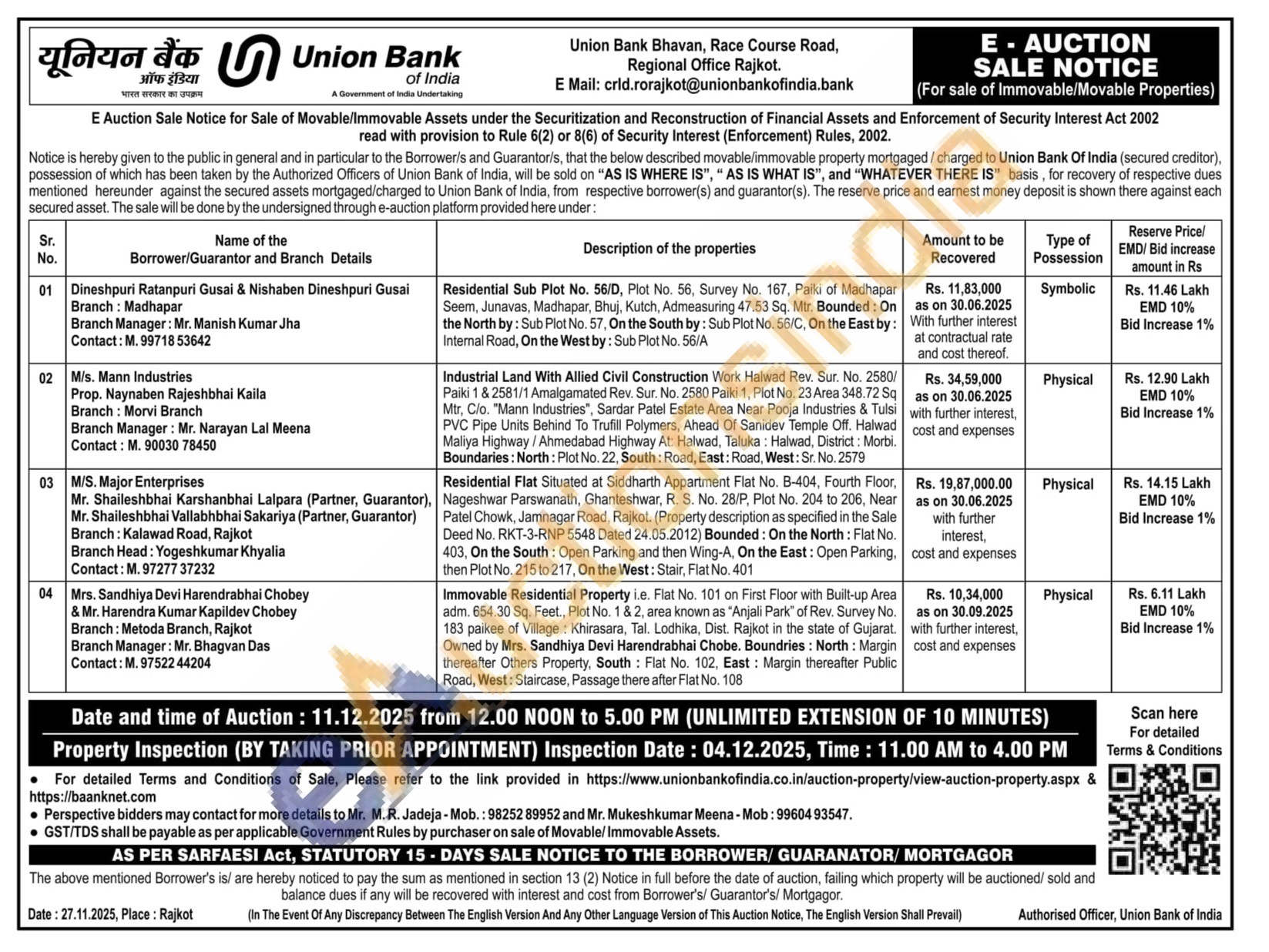 2) Industrial Land With Allied Civil Construction Work Halwad Rev. Sur. No. 2580/Paiki 1 & 2581/1 Amalgamated Rev. Sur. No. 2580 Paiki 1, Plot No. 23 Area 348.72 Sq Mtr, C/o. "Mann Industries", Sardar Patel Estate Area Near Pooja Industries & Tulsi PVC Pipe Units Behind To Trufill Polymers, Ahead Of Sanidev Temple Off. Halwad Maliya Highway/Ahmedabad Highway At: Halwad, Taluka: Halwad, District: Morbi. Boundaries: North: Plot No. 22, South: Road, East: Road, West: Sr. No. 2579