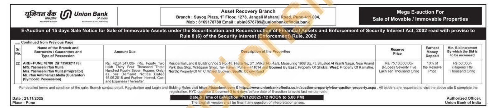 House and open space situated at Sr.No. 1614, Gram Panchayat milkat No.806/3 At village Rashin, Tal Karjat Dist Ahmednagar admeasuring area 1175.00 Sq. Ft. belonging to Mr.Ramkrishna Manik Salve and Dadaram Manik Salve.