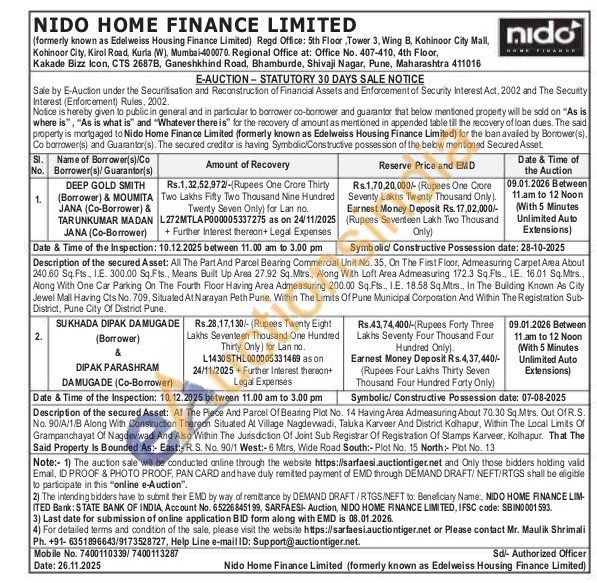 Description of the secured Asset: All The Part And Parcel Bearing Commercial Unit No. 35, On The First Floor, Admeasuring Carpet Area About 240.60 Sq. Fts 1.E. 300.00 Sq.Fts., Means Built Up Area 27.92 Sq.Mtrs., Along With Loft Area Admeasuring 172.3 Sq. Fts., IE. 16.01 Sq.Mirs., Along With One Car Parking On The Fourth Floor Having Area Admeasuring 200.00 Sq.Fts., I.E. 18.58 Sq.Mtrs., In The Building Known As City Jewel Mall Having Cts No. 709, Situated At Narayan Peth Pune, Within The Limits Of Pune Municipal Corporation And Within The Registration Sub-District, Pune City Of District Pune.