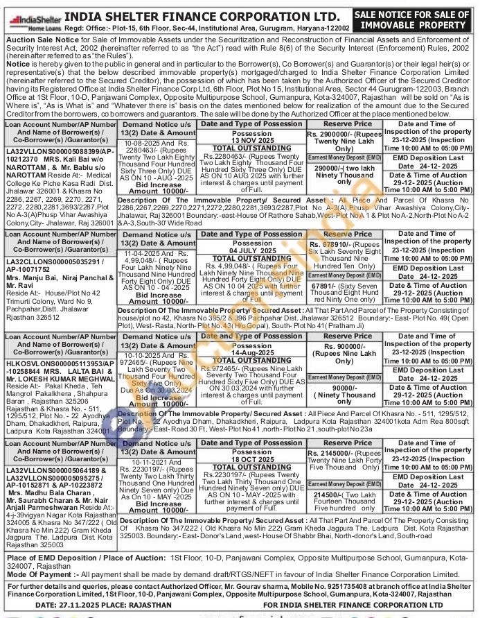 contact Authorized Officer, Mr. Gourav sharma, Mobile No. 9251735408