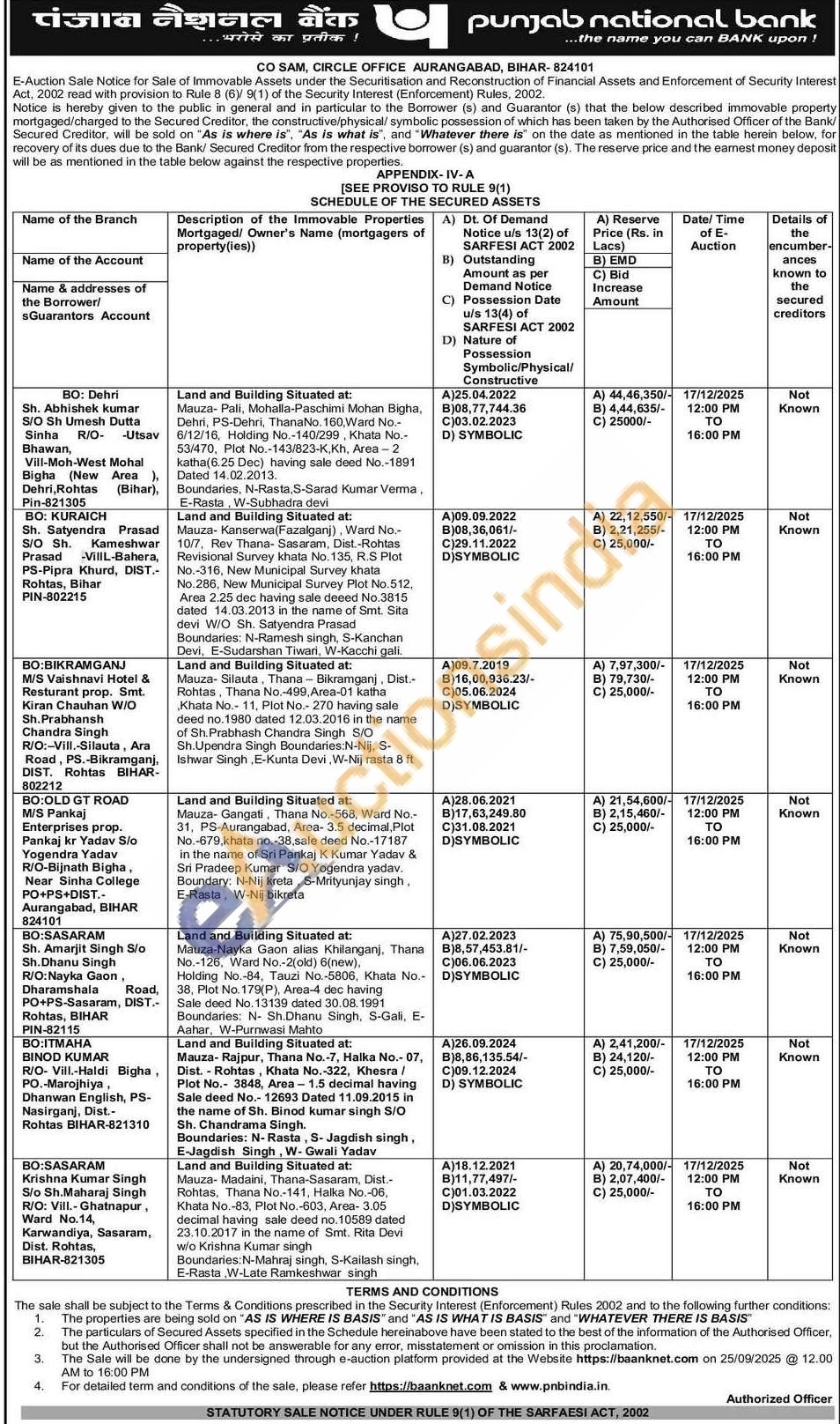 Land and Building Situated at: Mauza-Rajpur, Thana No.-7, Halka No.- 07, Dist. Rohtas, Khata No.-322, Khesra /Plot No. 3848, Area-1.5 decimal having Sale deed No.- 12693 Dated 11.09.2015 in the name of Sh. Binod kumar singh S/O Sh. Chandrama Singh. Boundaries: N-Rasta, S- Jagdish singh, E-Jagdish Singh, W-Gwali Yadav