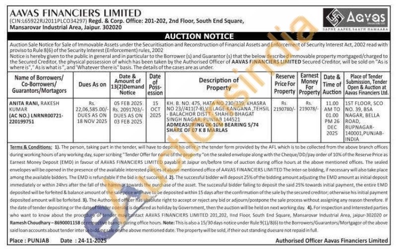 KH. B. NO. 475, HATA NO 230/339, KHASRA NO 23//411(7-8), VILLAGE-KANGANA, TEHSIL BALACHOR DISTT-SHAHID BHAGAT SINGH NAGAR, PUNJAB 144521 ADMEASURING OK-10M BEARING 5/74 SHARE OF 07 K 8 MARLAS