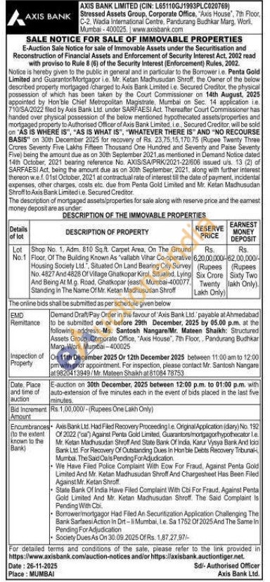 Shop No. 1, Adm. 810 Sq.ft. Carpet Area, On The Ground Floor, Of The Building Known As "vallabh Vihar Co-operative Housing Society Ltd., Situated On Land Bearing City Survey No. 4827 And 4828 Of Village Ghatkopar Kirol, Situated. Lying And Being At M.g. Road, Ghatkopar (east), Mumbai-400077. Standing in The Name Of Mr. Ketan Madhusudan Shroff