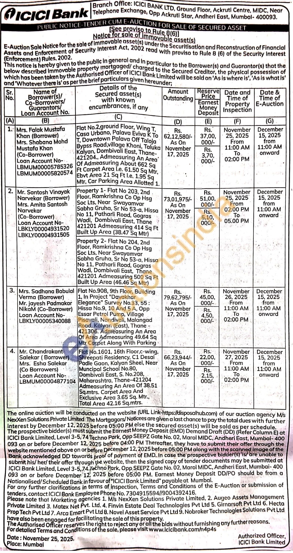 Flat No.1601, 16th Floor,c-wing, Shreepati Residency, C1 Desai Padle Gaon, Kalyan Sheel, Near Muncipal School No.80, Dombivali East, S. No.208, Maharashtra, Thane-421204 Admeasuring An Area Of 38.51 Sq.mtrs. Carpet Area And Exclusive Area 3.65 Sq. Mtr., Total Area 42.16 Sq.mtrs