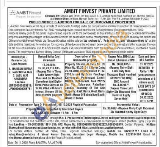 Property Situated At Patta No. 59, Misal No. 57/2010-11, Dayar Dated 25-10-2010, Dispatch Dated 11-12-2010 Issued By Gram Panchayat Kalyanpur, Panchayat Samiti Balotra, Dist-barmer, Area 242.27 Sq. Yds, Kalyanpur, Rajasthan-344026. Boundary Of The Said Property:- East: Rasta, West: Rasta, North House Of Babulal And South: House Of Kamla