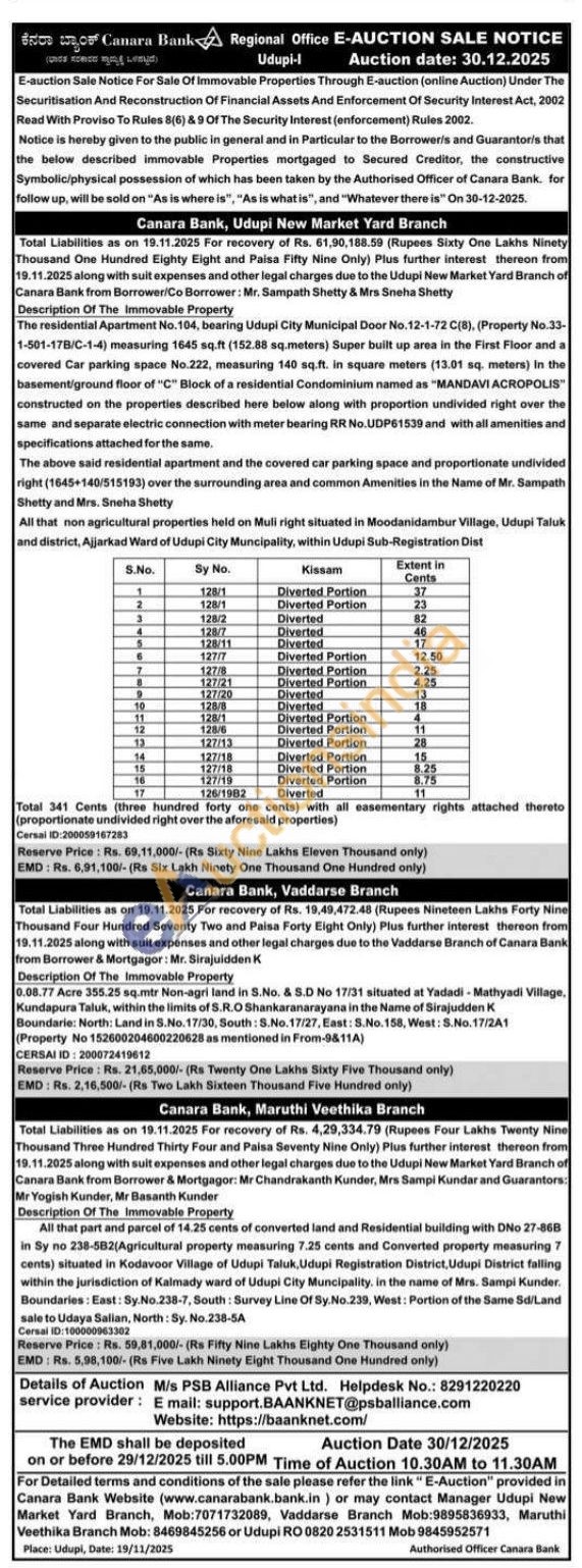 0.08.77 Acre 355.25 sq.mir Non-agri land in 5.No. & B.D No 17/31 situated at Yadadi-Mathyadi Village, Kundapura Taluk, within the limits of S.R.O Shankaranarayana in the Name of Sirajudden K Boundarie: North: Land in 5.No.17/30, South: 8.No. 17/27, East: S.No. 158, West: S.No.17/2A1 (Property No 152000204000220628 as mentioned in From-9411A