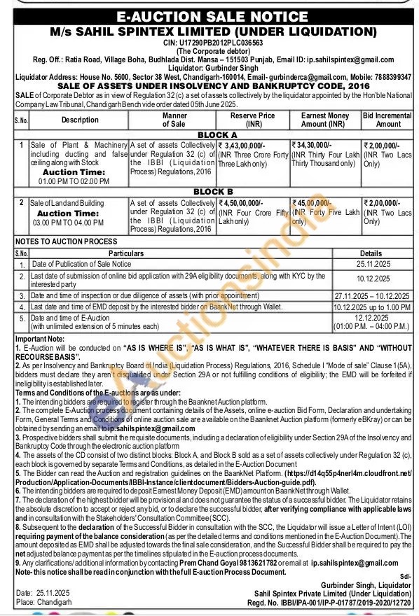 M/s SAHIL SPINTEX LIMITED (UNDER LIQUIDATION)