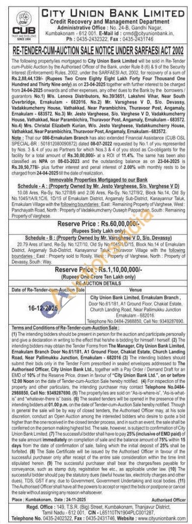 20.79 Ares of land, Re-Sy No. 127/10, Old Sy No 1045/1/0/15, Block No. 14 of Emakulare District. Angamaly Sub-District, Kanayannur Taluk, Thuravoor Village with the following boundaries East Property sold to Rosily, West: Property of Varghese. North: Property of Devassy, South Way