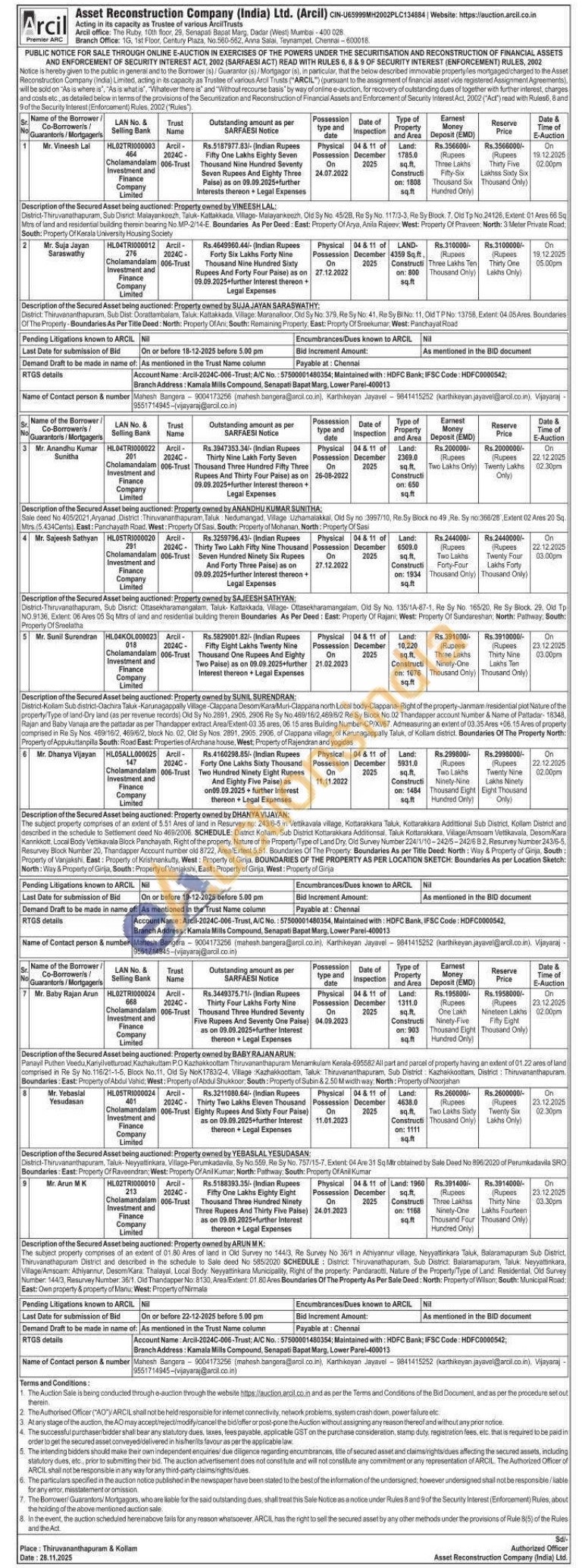 3) Sale deed No 405/2021, Aryanad, District: Thiruvananthapuram, Taluk: Nedumangad, Village Uzhamalakkal, Old Sy no 3997/10, Re Sy Block no 49, Re. Sy no:366/28 Extent 02 Ares 20 Sq. Mirs (5.434Cents). East: Panchayath Road, West: Property Of Sasi, South: Property of Mohanan, North: Property Of Sasi