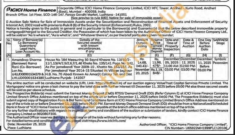 House No 184 Measuring 50 Sqyrd Khasra No. 12//10/2-11/1,13/4/2,5/2,6,7/1,46 Khoto No. 135/141 Page No. 342, As Per jamabandi Year 2009-10, Khatta No. 151/157, As Per Jamabandi Year 2014-15 Situated At Village Jagirpur H.B. No. 70 Abadi Known As Amarjit Colony Teh and Dist Ludhiana Punjab-141007