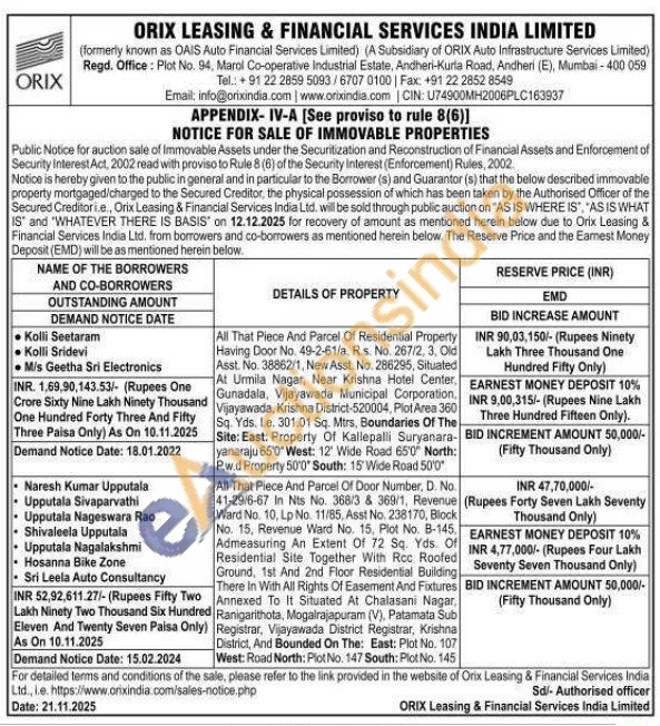 All That Piece And Parcel Of Residential Property Having Door No. 49-2-61/a. R.s. No. 267/2, 3, Old Asst. No. 38862/1, New Asst. No. 286295, Situated At Urmila Nagar, Near Krishna Hotel Center. Gunadala, Vijayawada Municipal Corporation. Vijayawada, Krishna District-520004, Plot Area 360 Sq. Yds. l.e. 301.01 Sq. Mtrs, Boundaries Of The Site: East: Property Of Kallepalli Suryanara-yanaraju 65'0" West: 12° Wide Road 65'0" North: P.w.d Property 50'0" South: 15' Wide Road 50'0