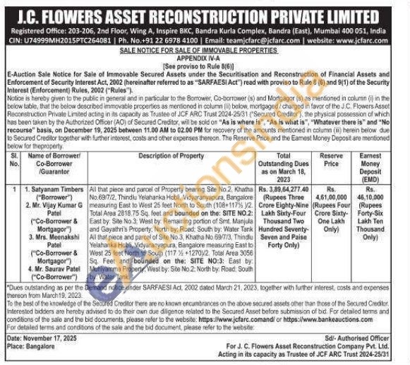 All that piece and parcel of Property bearing Site No.2, Khatha No 69/7/2. Thindlu Yelahanka Hobli, Vidyaranyapura, Bangalore measuring East to West 25 feet North to South (108+117%)12. Total Area 2818.75 Sq. feet and bounded on the: SITE NO.2: East by: Site No.3: West by: Remaining portion of Smt. Manjula and Gayathri's Property, North by: Road: South by: Water Tark All that piece and parcel of Site No.3, Khatha No 69/7/3, Thinglu Yelahanka Hobli, Vidyaranyapura, Bangalore measuring East to West 25 feet North to South (117% +1270/2. Total Area 3056 Sq. Feet and bounded on the: SITE NO:3: East by: Muniyamma Property: West by: Ste No 2: North by Road Soulh by: Water Tank
