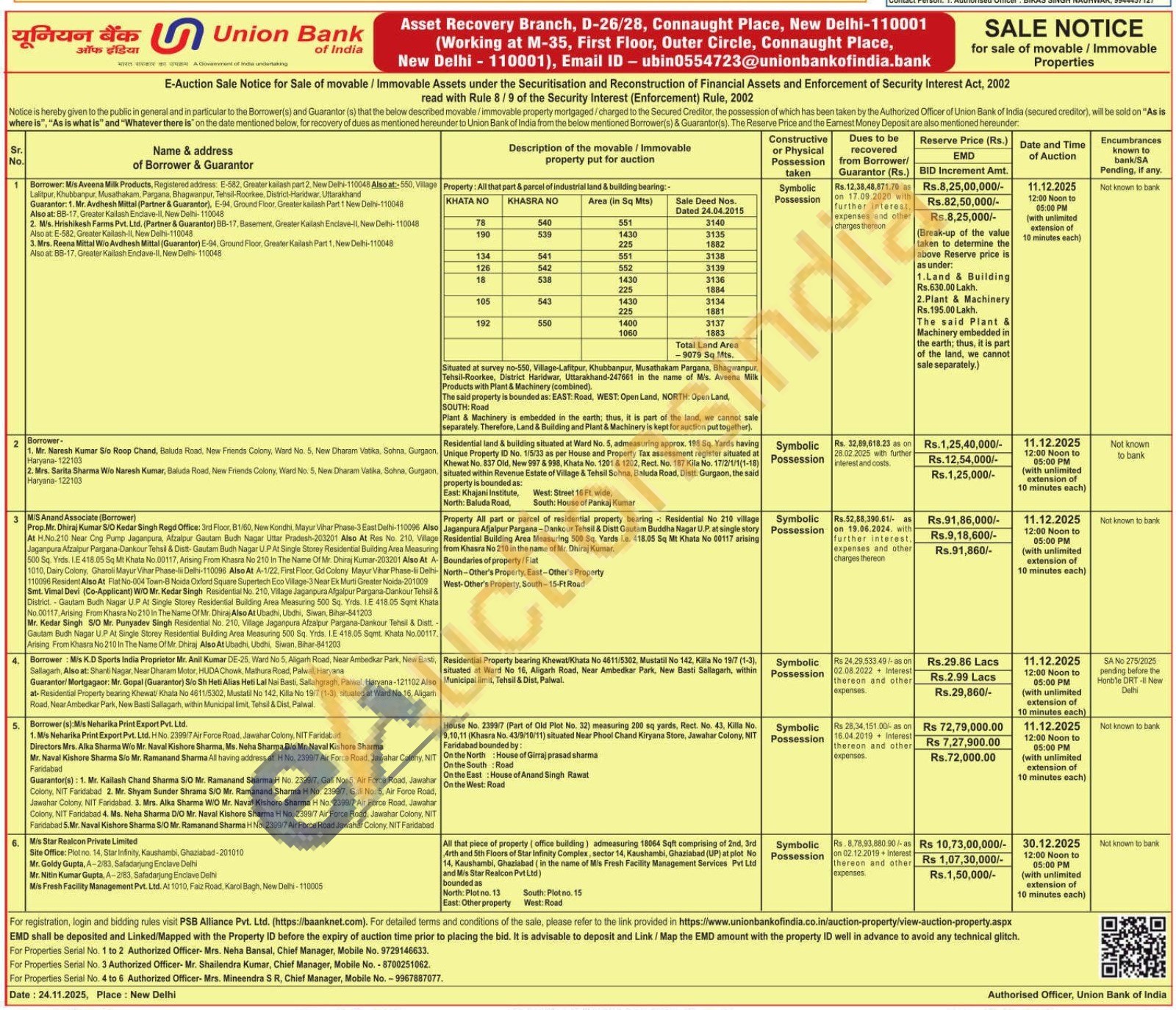 Authorized Officer- Mrs. Neha Bansal, Chief Manager, Mobile No. 9729146633