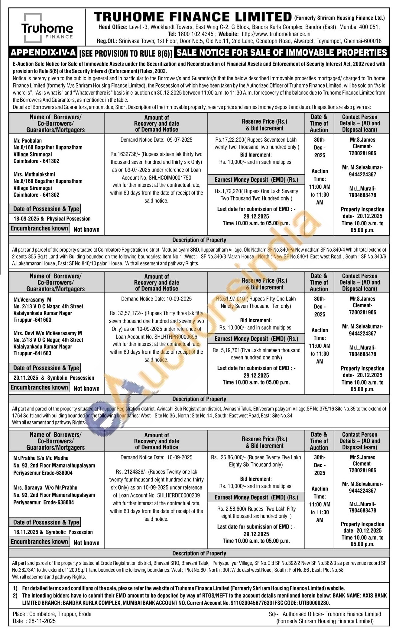 All part and parcel of the property situated at Erode Registration district, Bhavani SRO, Bhavani Taluk, Periyapuliyur Village, SF No.Old SF No.392/2 New SF No.382/3 as per revenue record SF No.382/3A1 to the extend of 1200 Sq.ft land bounded on the following boundaries: West: Plot No.60, North: 30ft Wide east west Road, South: Plot No.86, East: Plot No.58 With all easement and pathway Rights