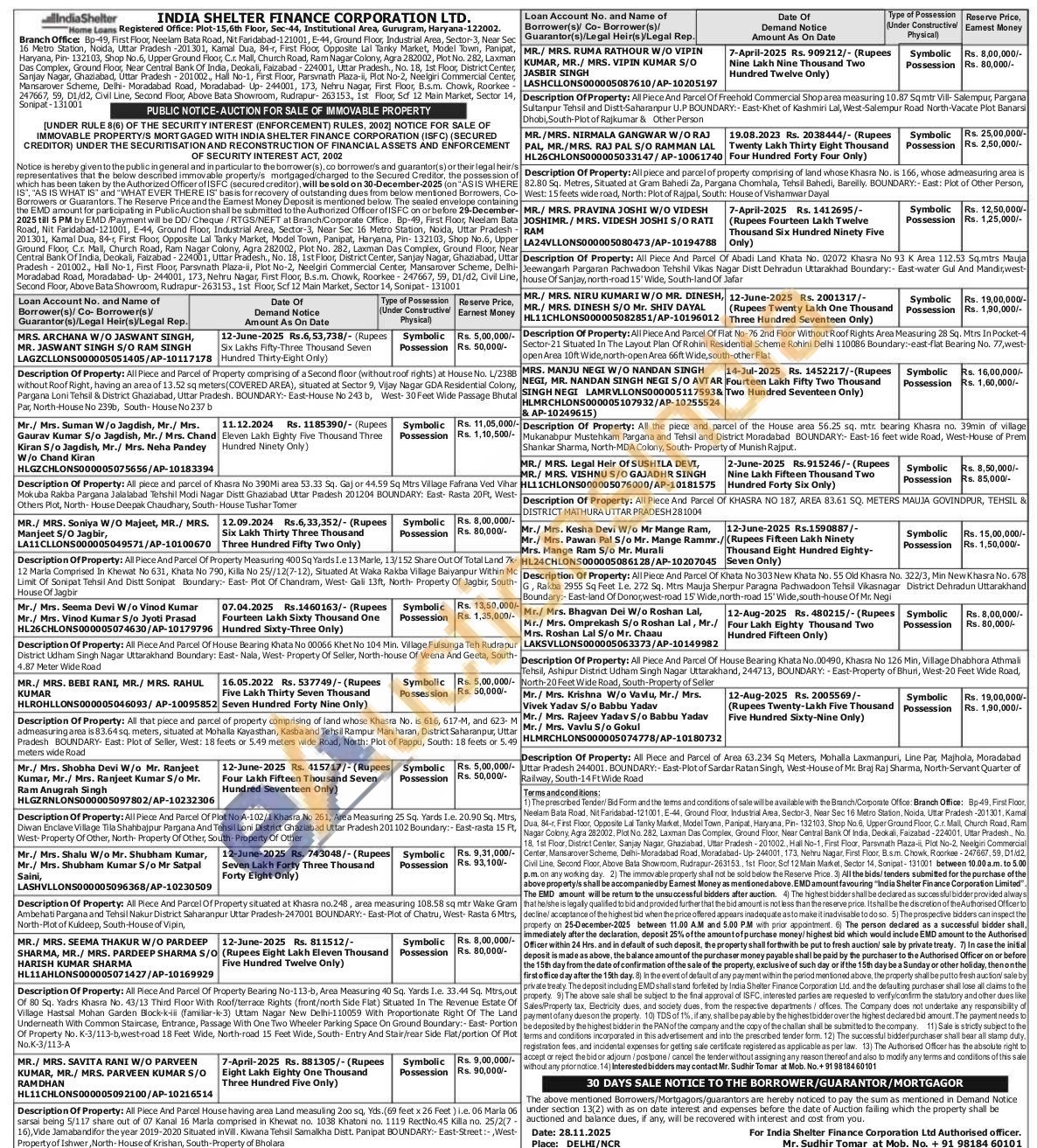 Mr Sudhir Tomar ; +919818460101