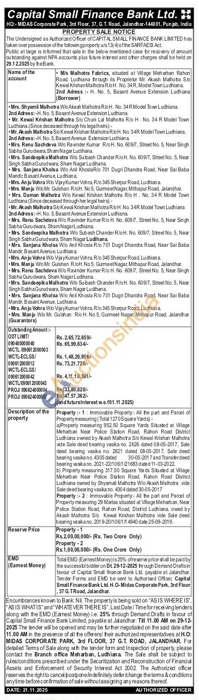 Immovable Property All the part and Parail of Property messuing 29 Maries situated at Vilage Meharban. Near Police Station Road, Ranon Road, District Ludhiana, owed by Akash Malhotra Sio Kewal Kishan Malhotra vide Sale deed beeing vaska no 2019-20/106/1/1 4940 date 25-09-2019