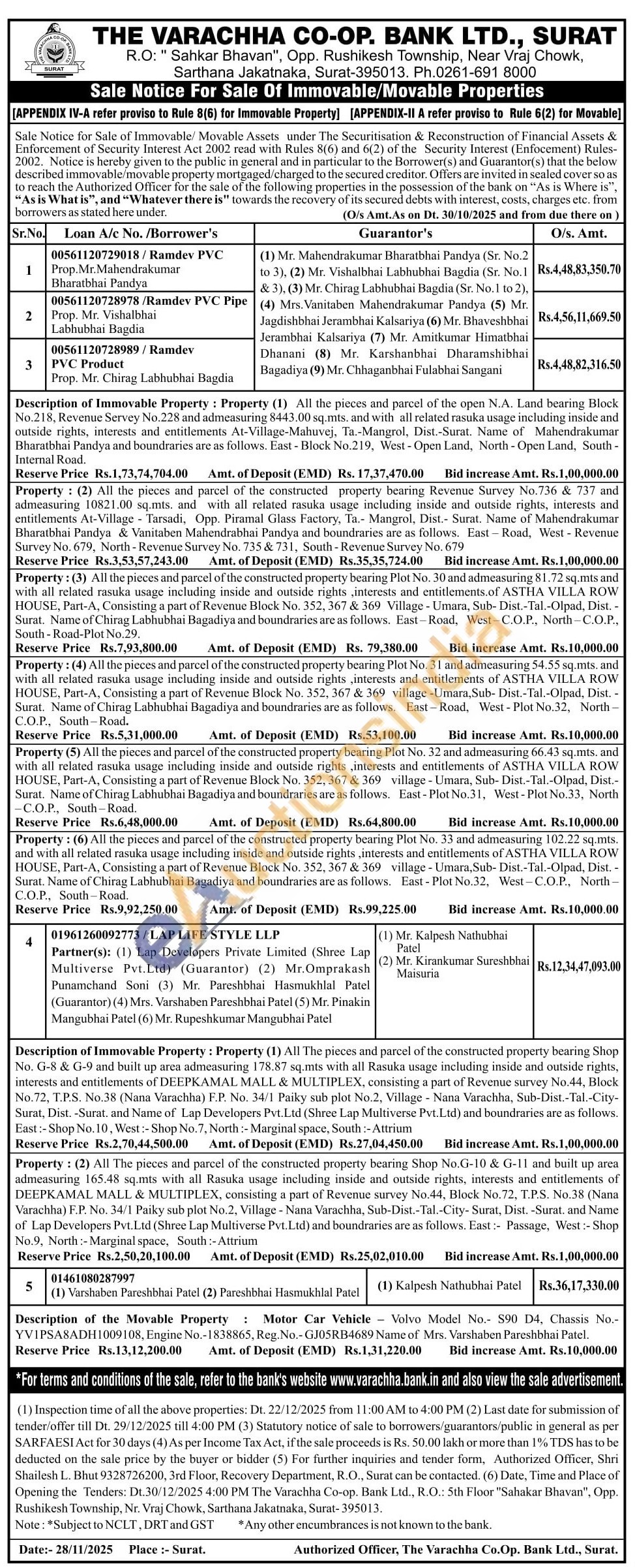 Contact Authorized Officer, Shri Shailesh L. Bhut : 9328726200