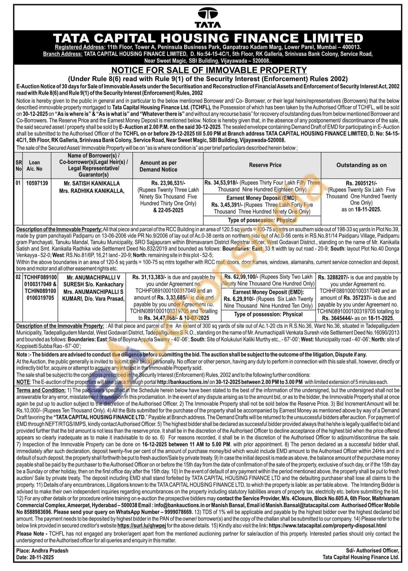 All that piece and parcel of the An extent of 300 sq yards of site out of Ac. 1-20 cts in R.S.No.36, Ward No.36, situated in Tadepalligudem Municipality, Tadepalligudem Mandal, West Godavari District, Tadepalligudem S.R.O., standing on the name of Mr. Anumachipalli Venkata Suresh vide Settlement Deed No. 16090/2013 and bounded as follows: Boundaries: East: Site of Boyina Appala Swarmy-40-06'; South: Site of Kolukuluri Kaliki Murthy etc.,-67-00'; West: Municipality road-40-06'; North: site of Koppisetti Subba Rao-67-00';