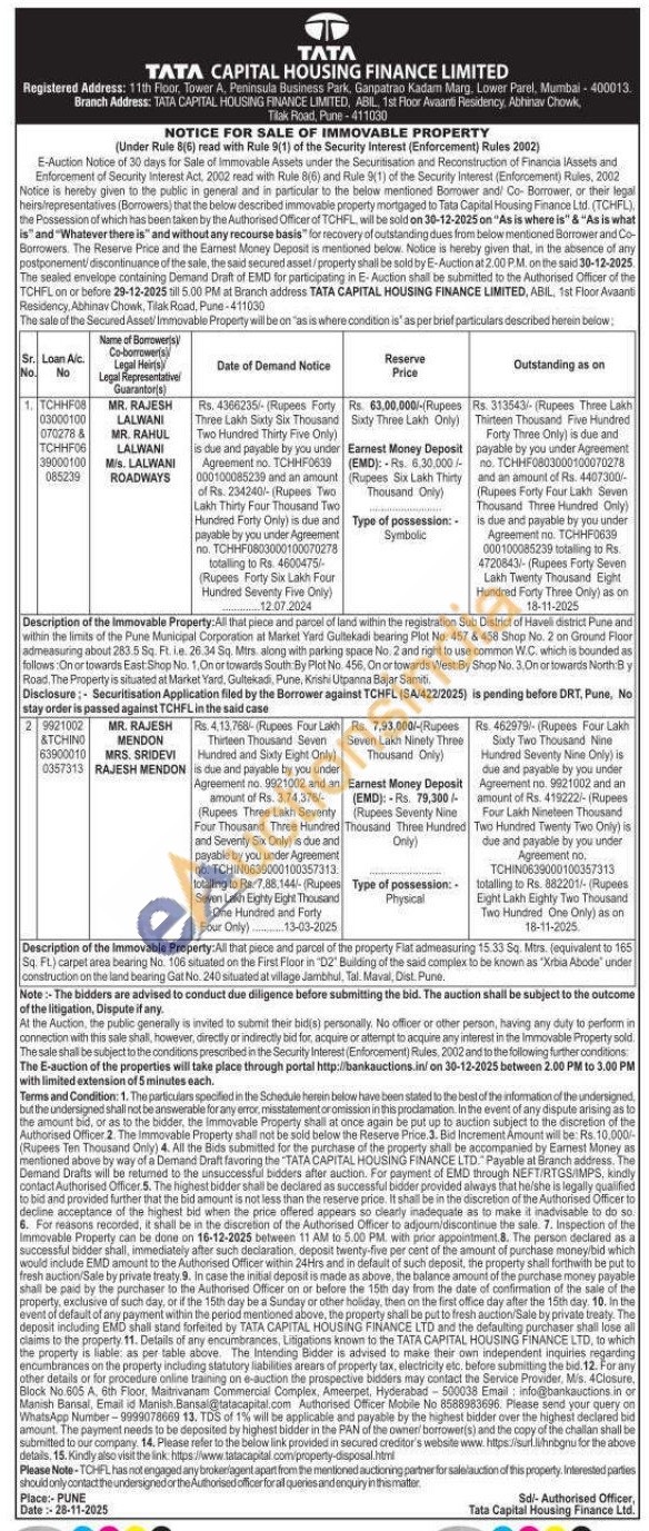 Description of the Immovable Property:All that piece and parcel of the property Flat admeasuring 15.33 Sq. Mtrs. (equivalent to 165 Sq. Ft) carpet area bearing No. 106 situated on the First Floor in "D2" Building of the said complex to be known as "Xrbia Abode' under construction on the land bearing Gat No. 240 situated at village Jambhul, Tal. Maval, Dist. Pune.
